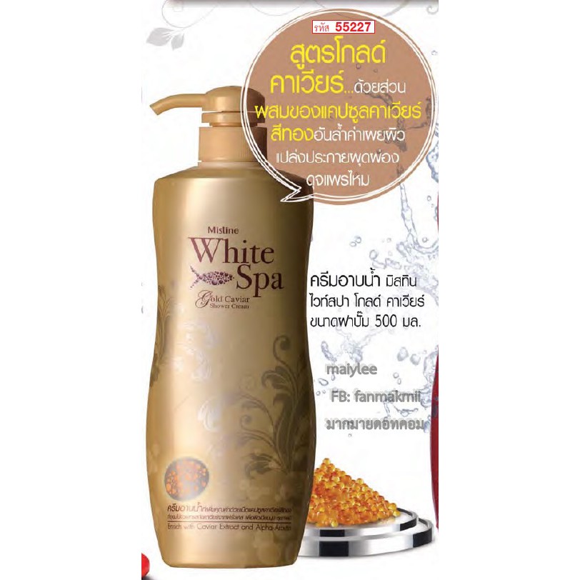 ครีมอาบน้ำ มิสทีน ไวท์สปา ไวท์ มัสค์. มิสทีน ไวท์สปา ซัมเมอร์ ยูวีทรี ไวท์เทนนิ่ง บอดี้ โลชั่น มิสทิน ซุปเปอร์ นาโน ไวท์เทนนิ่ง โลชั่น mistine super nano whitenning lotion • โลชั่นบำรุงผิว เพื่อผิวขาวทันที ดูแลผิวหมองคล้ำเป็นพิเศษ กลิ่นหอมมาก • หมดปัญหาผิว. มิสทีน ไวท์ สปา สูตรโกลด์ คาเวียร์ พบกับนวัตกรรมใหม่ของโลชั่นบำรุงผิวกายและผิวหน้า ให้สัมผัสแห่งความนุ่มลื่นดุจใยไหม อุดมด้วยคุณค่า. ราคา 109 บาท พิเศษราคาเปิดตัว ราคายกนิ้ว.